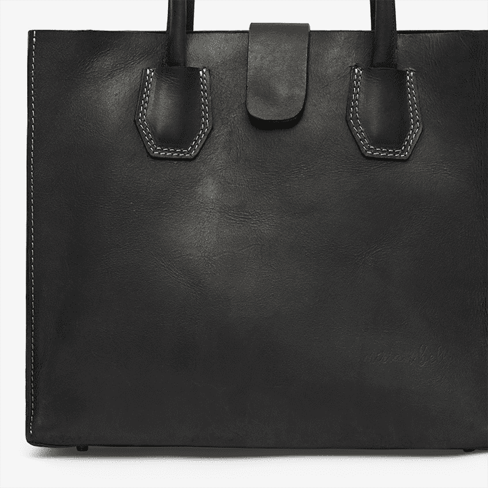 Our black leather tote handbag is crafted from premium pull-up leather, a natural full-grain material celebrated for its rich texture and evolving beauty. With use, the leather develops a warm, lustrous patina that reflects authentic craftsmanship and lasting quality.